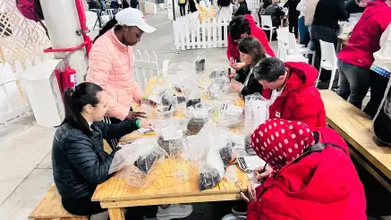D’une part, la mobilisation à Capetown de 15 collaborateurs de la filiale TotalEnergies E&P en Afrique du Sud auprès de l’association Ladles of Love, l'une des organisations caritatives alimentaires les plus importantes d’Afrique du Sud. Ils ont ainsi assemblé des kits pédagogiques pour aider des enfants à créer des jardins potagers au sein de leur école maternelle. Composés de compost, de semis et d’outils éducatifs, ils permettent ainsi aux enfants et à leur communauté d’apprendre à cultiver leur propre nourriture, favorisant ainsi la sécurité alimentaire et l’autosuffisance.
