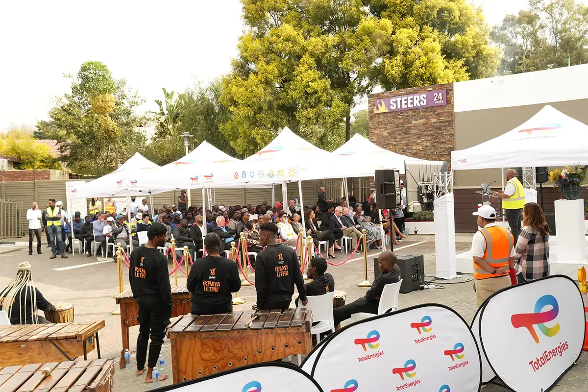 À Johannesburg, ce 14 mai après-midi, la centaine de bénéficiaires de l’opération de distribution de casques est accueillie par Mariam Kane-Garcia Directrice générale et CEO de TotalEnergies Afrique du Sud et par Jacques-Emmanuel Saulnier, Directeur Engagement Citoyen et Délégué général de la Fondation d’Entreprise TotalEnergies.