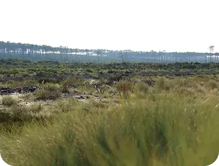 En 2022, de violents incendies ont détruit plus de 1 000 hectares de forêt domaniale de La Teste-de-Buch en Gironde. Après un diagnostic des dégâts sur la forêt et la dune, un plan d’actions a été établi et déployé sur deux ans par les équipes de l’ONF, avec le soutien de la Fondation TotalEnergies via le Fonds ONF-Agir pour la forêt et d’autres partenaires. Ce projet a consisté à sécuriser les lieux et entreprendre les travaux, en partie réalisé avec des structures d’insertion professionnelle, en faveur de la restauration des milieux naturels.